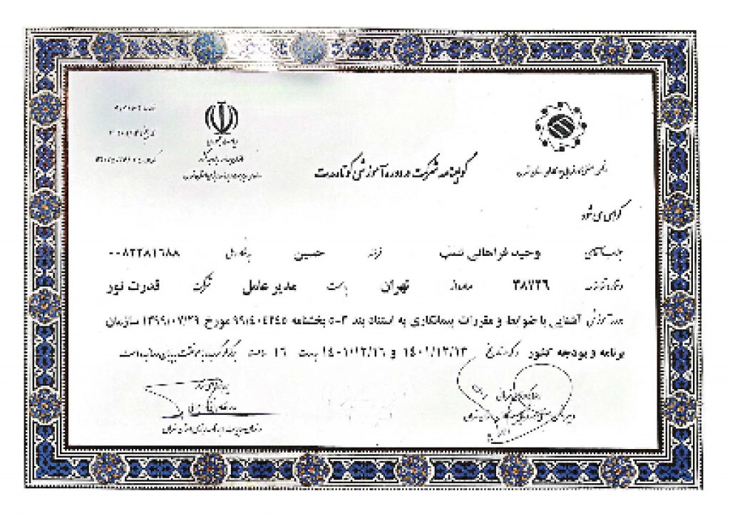 گواهینامه ها HSE-MS IMS ISO 9001:2015 ISO 14001:2015 ISO 45001:2018 Zota گواهینامه صلاحیت پیمانکاری گواهینامه آموزش عضویت انجمن صنفی گواهی عضویت گواهی عضویت گواهی عضویت اتاق بازرگانی پروانه کسب پروانه کسب