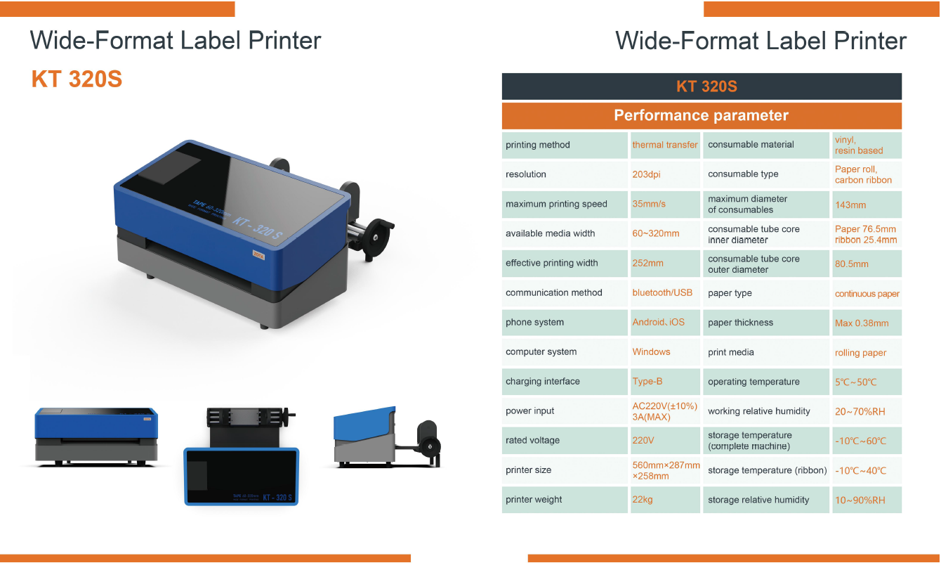پرینتر KT‑320S از برند ZOTA، یک ماشین چاپگر لیبل صنعتی با فرمت پهن است که برای چاپ حرفهای روی فیلمهای پلیمری (پیویسی، PET، PP و غیره) طراحی شده است. با امکاناتی ویژه، مناسب چاپ علائم صنعتی، برچسبهای ایمنی، شمارهگذاری لولههای پتروشیمی و برچسب های شب نمای PVC است